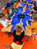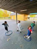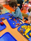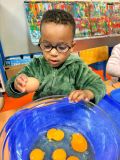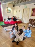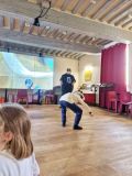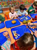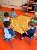 Atelier Monsieur Patate, création de toupie vision optique, atelier argile, création d'un tapie sensoriel en commun entre les petits et le 6-8 ans, atelier pâte à sel, ...
