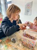 Jeux au dojo avec Audrey, atelier perles avec Guylene, création avec Loan